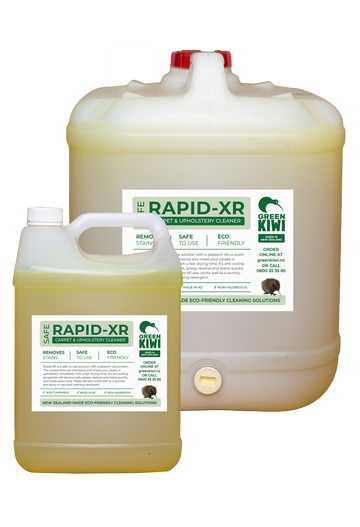 Rapid XR is a safe to use formula with a fresh citrus scent that shampoos & rinses completely to reduce drying time. It's anti-soiling properties easily remove soils, greasy residues & stubborn stains.
