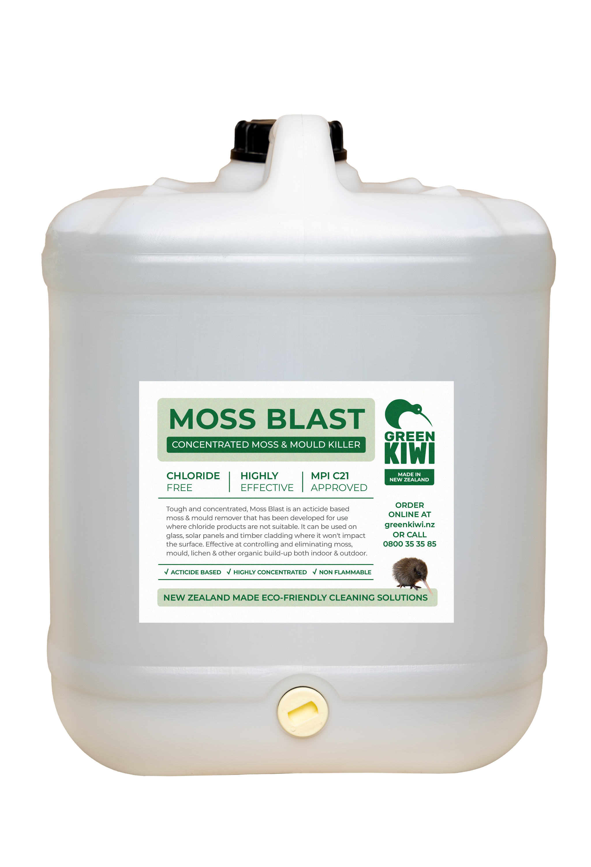 Tough & very concentrated, Moss Blast is a non-DG, chloride-free solution which is very effective at controlling and eliminating moss, mould, lichen & other build-up both indoor & outdoor.