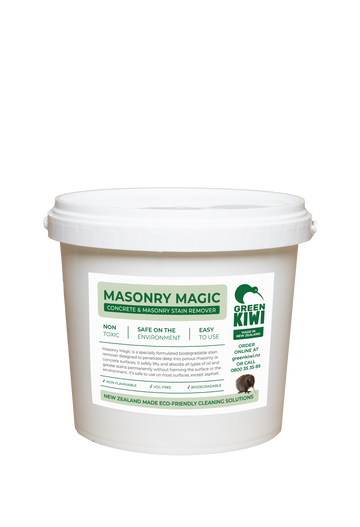 Masonry Magic is a powerful, eco-friendly oil stain remover designed to lift grease and grime from concrete, masonry, aged asphalt and pavers. Biodegradable and non-toxic, it's trusted by commercial and residential users across New Zealand.