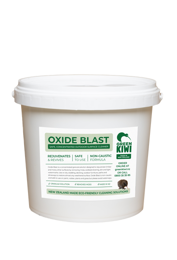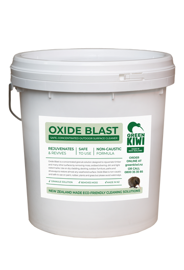 Oxide Blast is a new concentrated granule solution designed to rejuvenate timber & many other surfaces by removing moss, oxidised silvering, dirt & light watermarks.